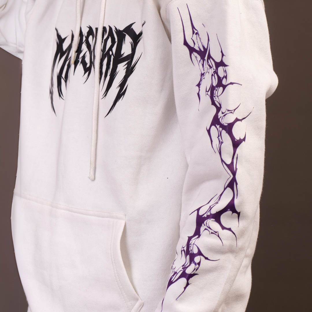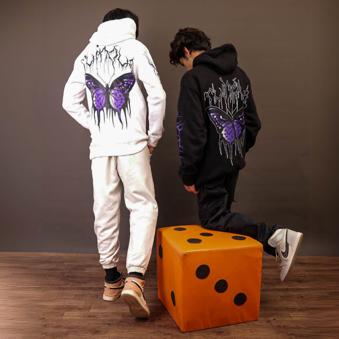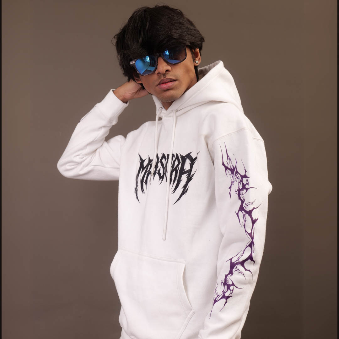 The Premium White Winter Collection Hoodie is a bold statement of gothic style and streetwear rebellion. 🦇💜 Featuring a haunting gothic purple butterfly on the back with a dripping effect, it’s a design that speaks darkness and elegance. The dripping black font spells out MAHASURA, adding a chilling vibe to the piece. 🖤